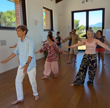 Le Qi Gong propose des mouvements courts et lents associés à la respiration et à la détente. Respectueux de chacun, il s'adresse à tout public.